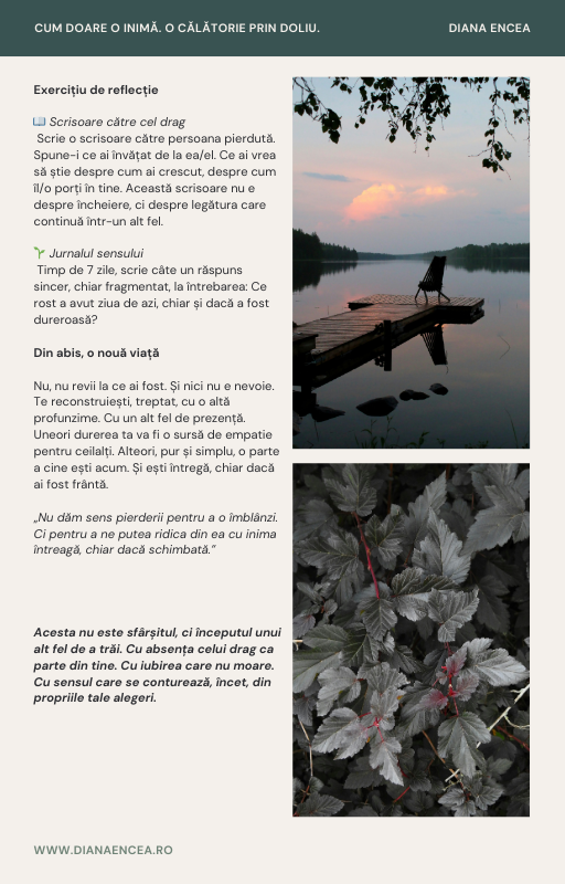 Jurnalul de Doliu: Martorul tău tăcut, cu exerciții ghidate de scris și art-terapie pentru momentele în care cuvintele sunt de ajuns.